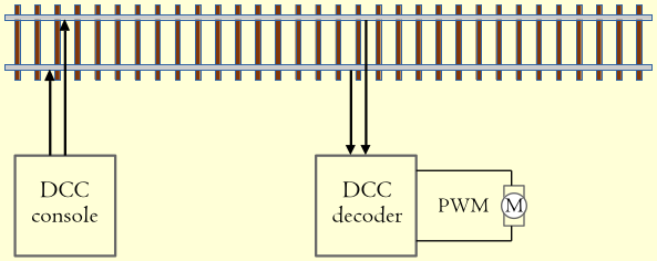 Diese wird normalerweise direkt mit Schienen verbunden um das DCC-Signal an den Decoder-µC in der Lokomotive zu übertragen.