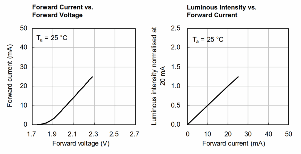 Using a forward current of 20mA creates a brightness of 100%.