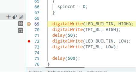 Breakpoints können dann per Mausklick erzeugt werden, aber auch hier an der richtigen Stelle.
