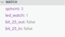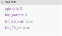 Als ersten Versuch mit einer Variablen habe ich „int cnt“ lokal in loop() deklariert und im WATCH per „+“ hinzugefügt.